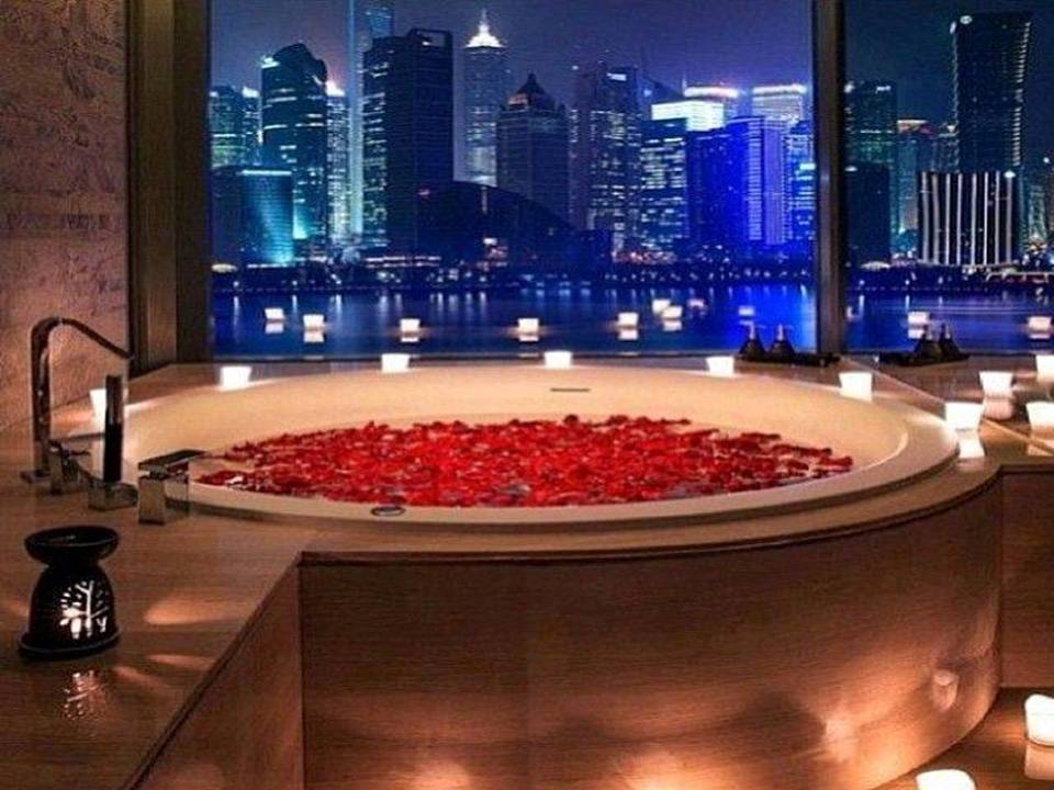 Романтический отдых: джакузи с лепестками роз